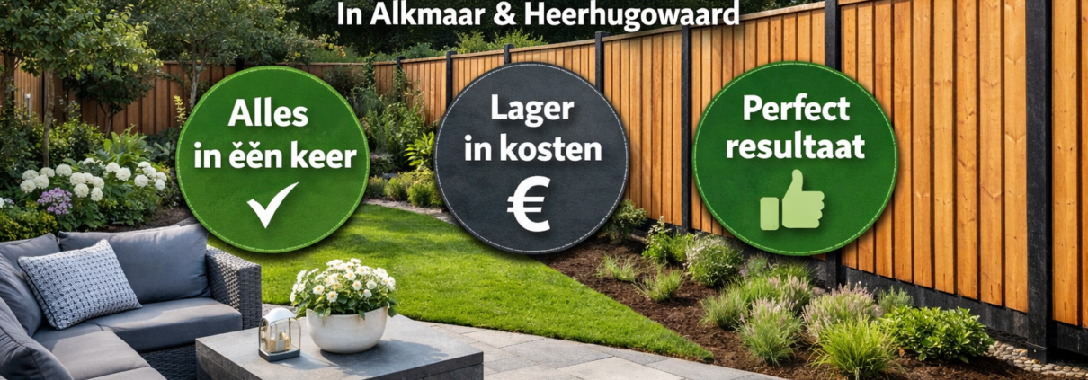 In de praktijk zien wij bij tuinaanleg in Alkmaar en Heerhugowaard dat het juist veel slimmer, mooier én goedkoper is om schutting plaatsen, sierbestrating aanleggen en de volledige tuinaanleg in één plan mee te nemen.